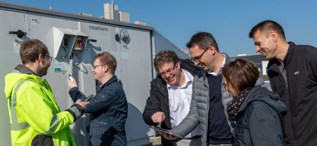 v.l.n.r: Pol Leyder, Robin Timmermanns (nesseler), Christian Großheim (Gebäudewirtschaft der Stadt Köln), Daniel Simons (nesseler), Michaela Mischok und Stephan Kremers (Gebäudewirtschaft der Stadt Köln)